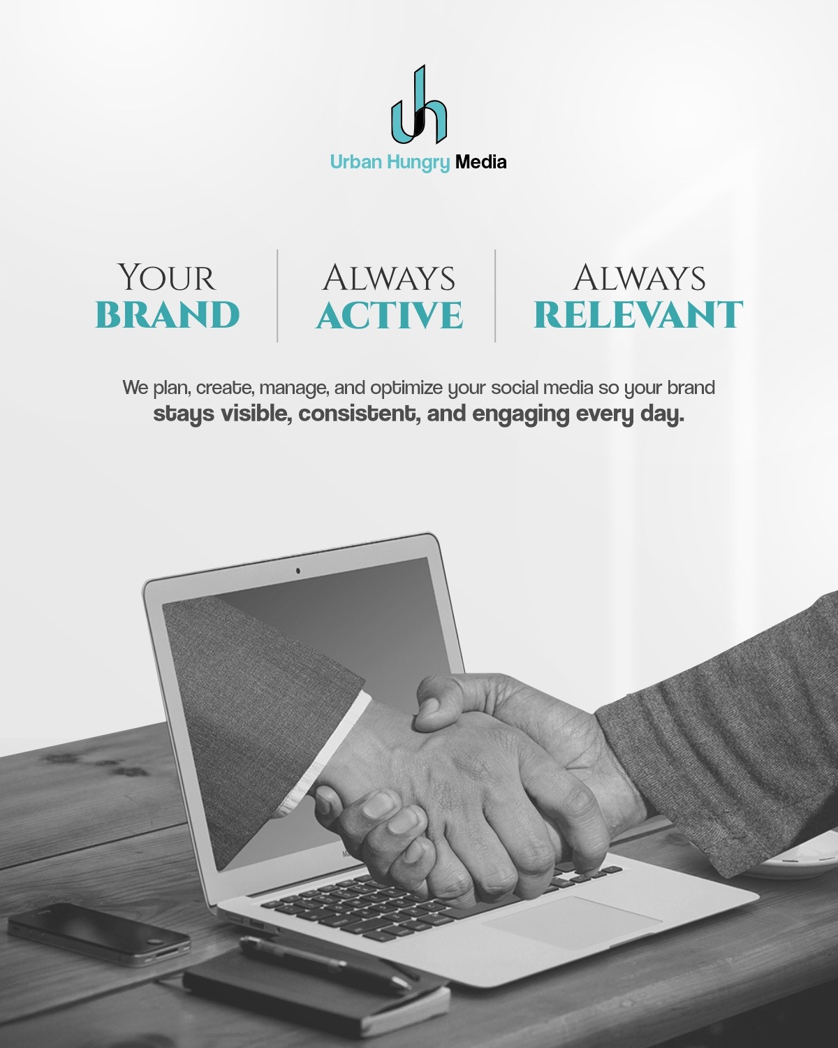 Urban Hungry Media aapke brand ko har din visible, consistent aur engaging banata hai. Hum strategic social media planning, content creation, account management aur performance optimization karte hain, jisse aapka brand online hamesha active, relevant aur top of mind rahe.