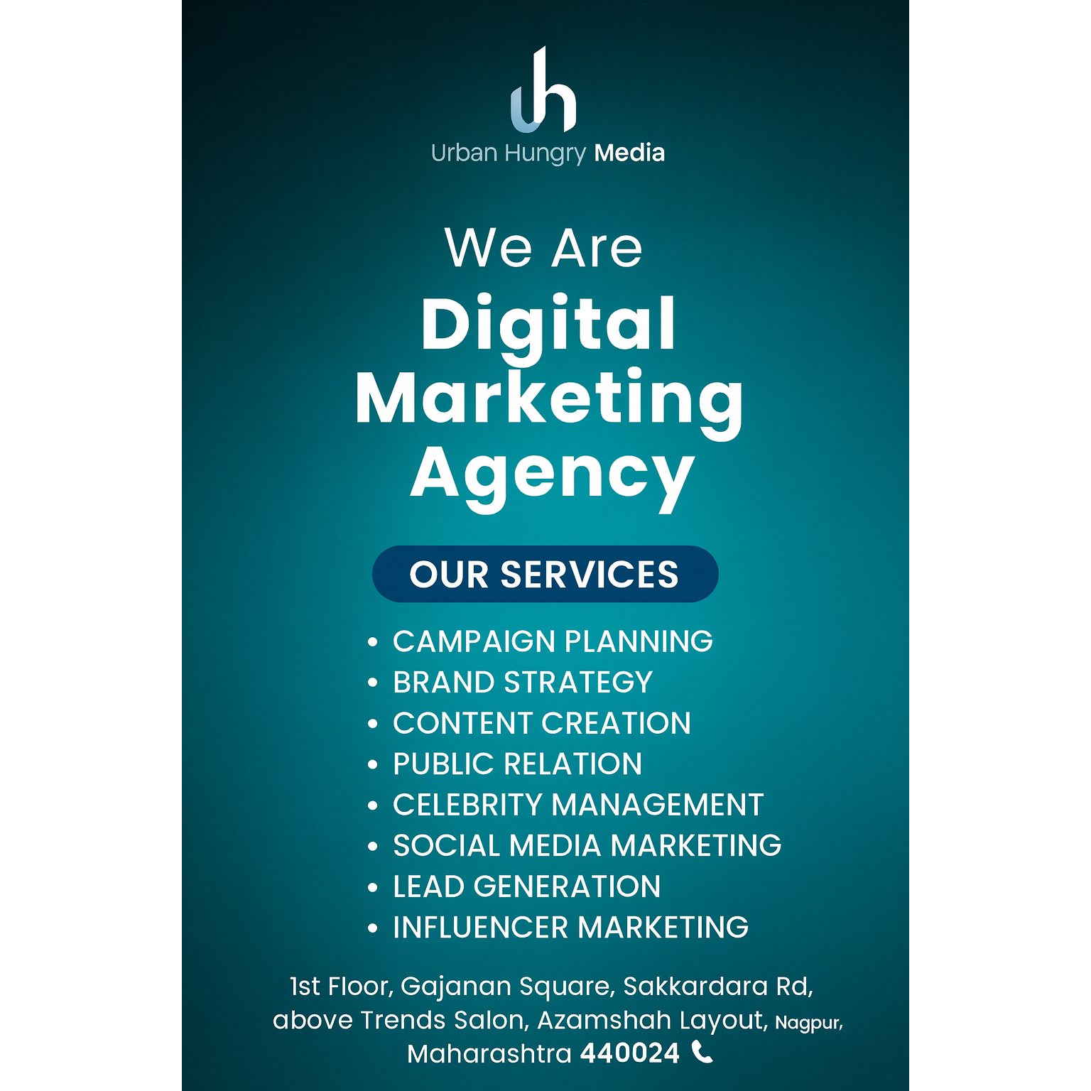 Urban Hungry Media is a top digital marketing agency in Nagpur offering campaign planning, brand strategy, social media marketing, content creation, PR, celebrity management, lead generation & influencer marketing. Grow your brand with expert digital solutions.